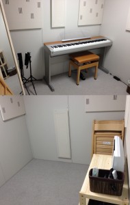 今まではLLルームに電子ピアノを設置していたため、LLルームでは4名での演奏が限界でした。この度、電子ピアノをLLルームからLルームに移動しましたので、LLルームは5名が椅子に座って演奏できるスペースとなりました。