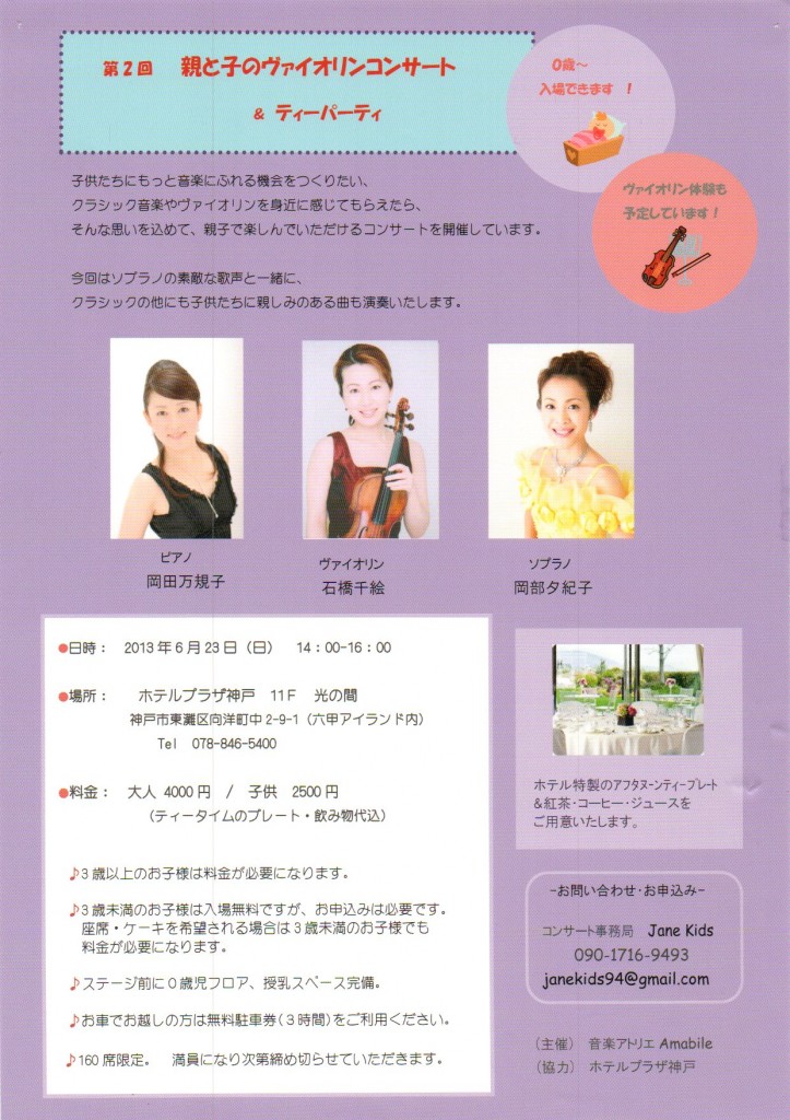 • 【演奏会】6月23日 第2回 親と子のヴァイオリンコンサート&ティーパーティ