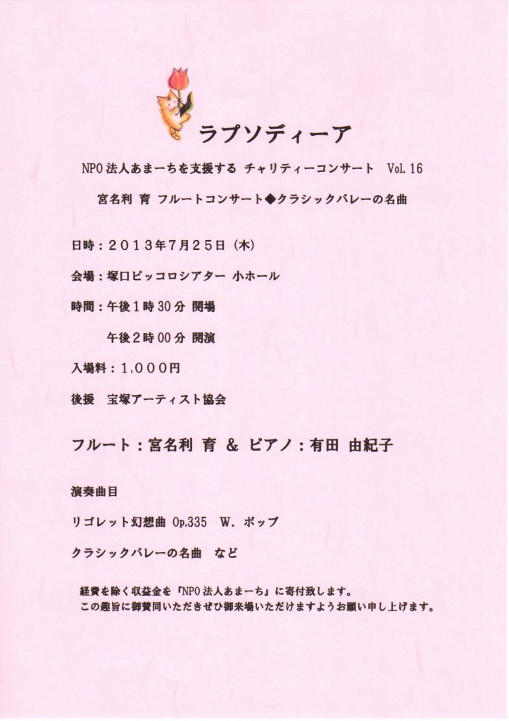 • 【演奏会】7月25日 ラプソディーア NPO法人あまーちを支援するチャリティコンサート Vol.16