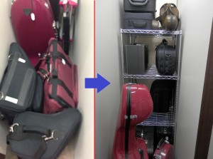 おかげさまでたくさんの方にご利用いただいてスペースが手狭になったのでお預かり楽器用のラックをすえ付けました。